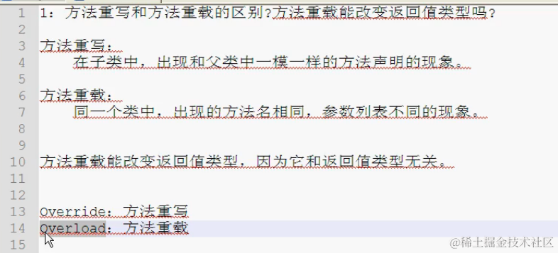 1、方法重载和方法重写的区别?