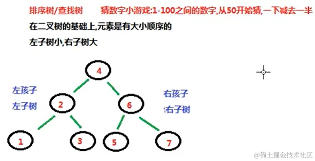 - 在二叉树的基础上,元素是有大小顺序的;