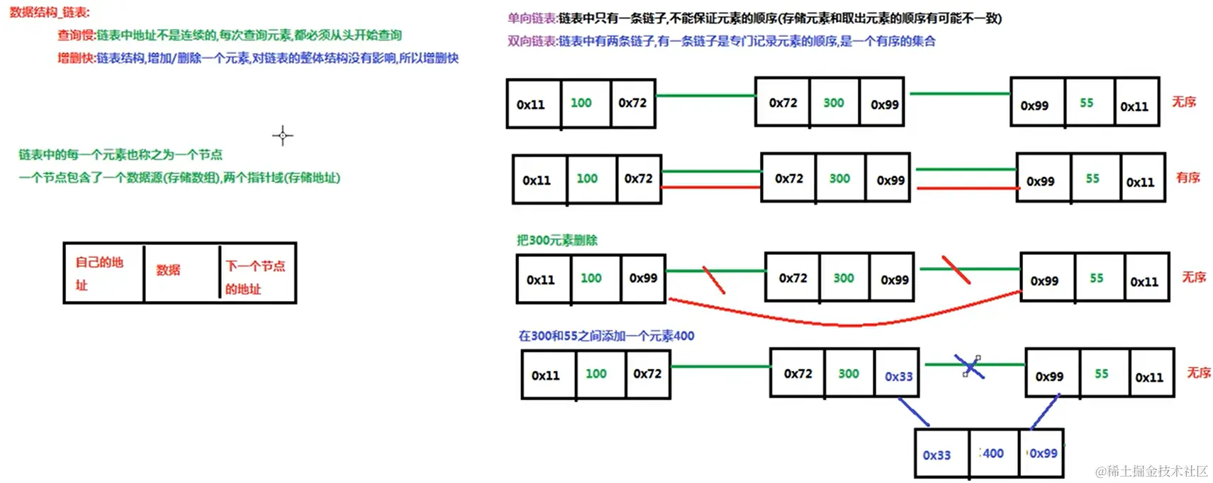 链表:查询慢,增删快