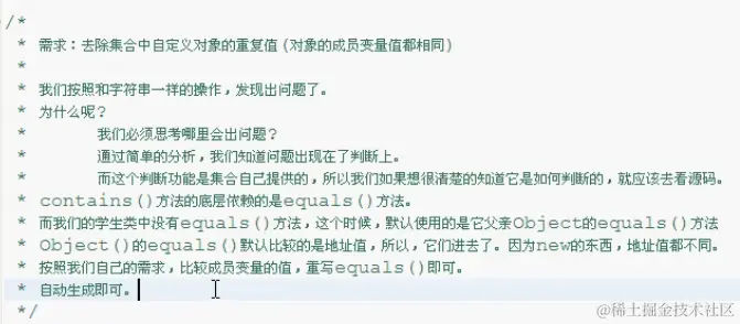 1、去除集合中的重复值(字符串的内容相同)