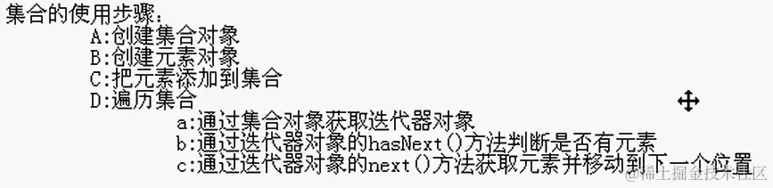 - Object next():获取元素,并移动到下一个位置