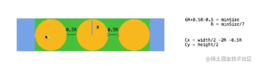 Cx =width/2 -2R-0.2R(第一个圆的横坐标)我们以中间圆的坐标为中心点