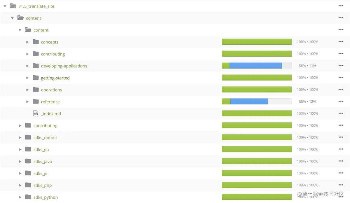 - “三座大山"工作量惊人:前面提到的 Dapr 文档中 “operations” / “developing-applications” / “reference” 这三个章节内容量超大,对翻译进度有致命影响。