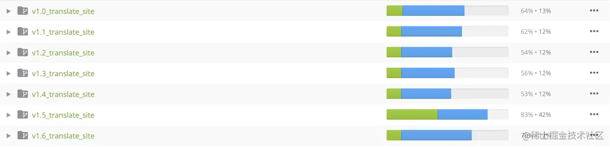 本次发布的 v1.5 版本在小伙伴的努力下翻译量突发猛进,在完成 “operations” 章节之后成功将翻译完成度推高到 80% 。但由于 v1.6 英文文档的大量更新和新增,在 v1.6 中翻译完成度已经自动下降到70%。