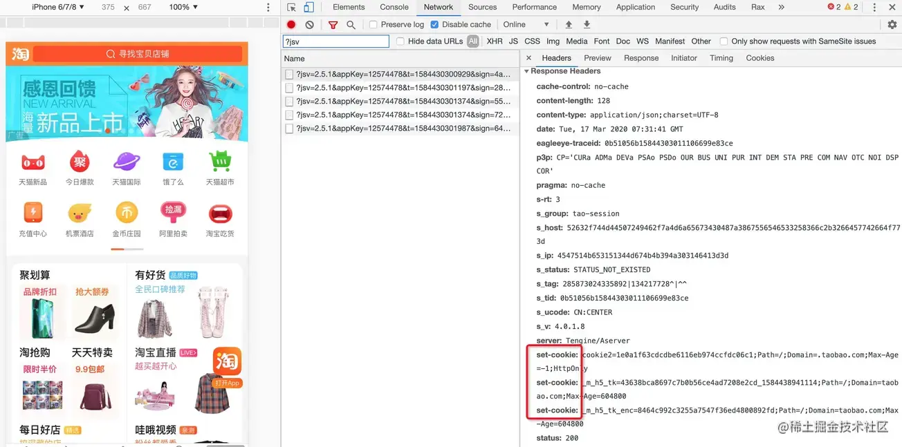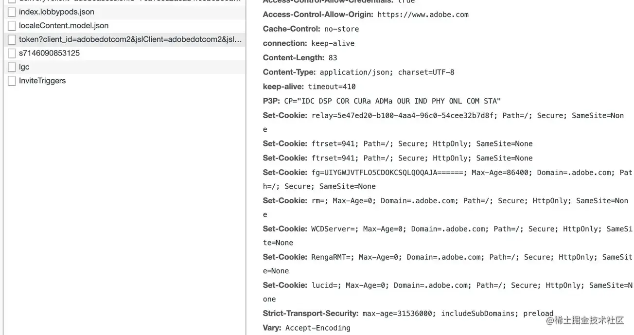 我们在请求返回的 Response Headers 可以看到 Set-Cookie 字段: