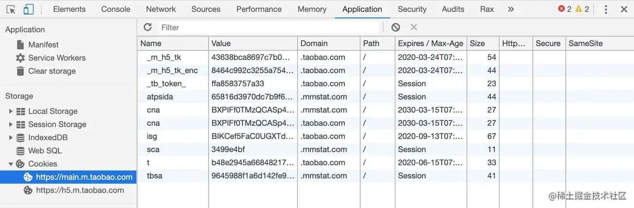 我们可以在浏览器的开发者工具中查看到当前页面的 Cookie: