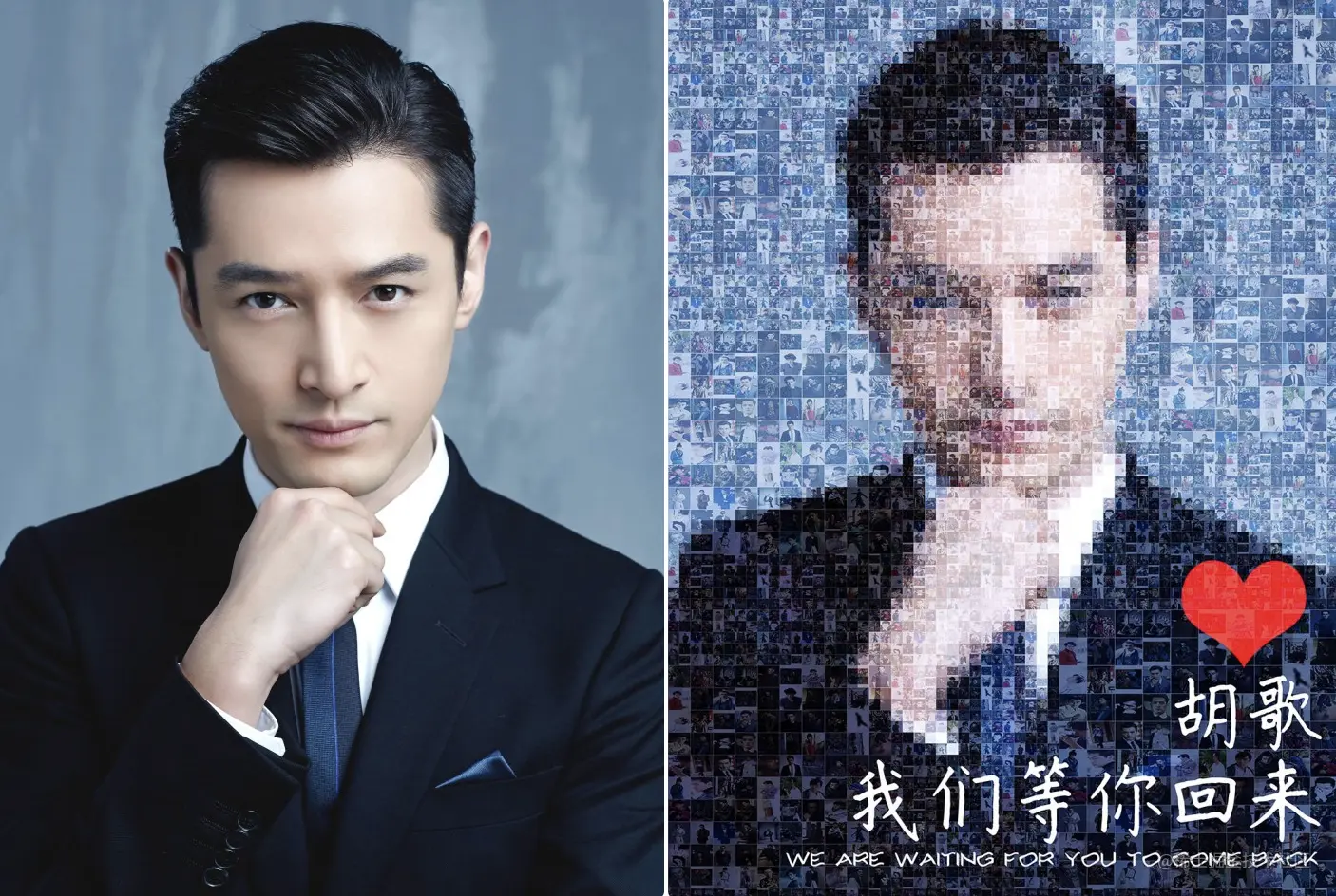 偶然看到营销号视频利用ps实现马赛克效果的图片,利用大量胡歌的图片实现出一张胡歌的照片,效果如下