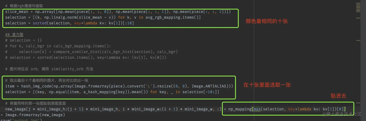 当图片分隔到一定小的情况下,我们只需要取颜色相同,结构大概的图片去替换掉那一小块图片即可
