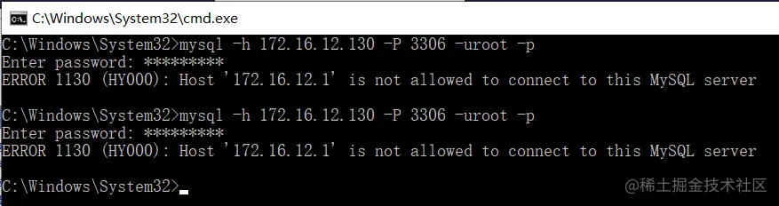 然后试一下,当我的IP不在列表里面时可以是不是可以连接数据库