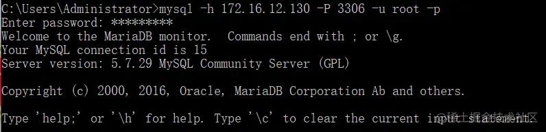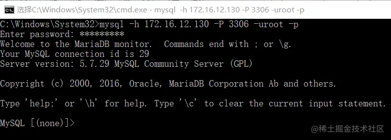 mysql -h IP -P 端口 -u 用户名 -p
