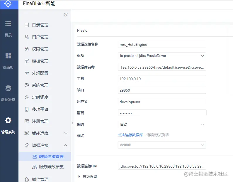 配置FineBI对接HetuEngine