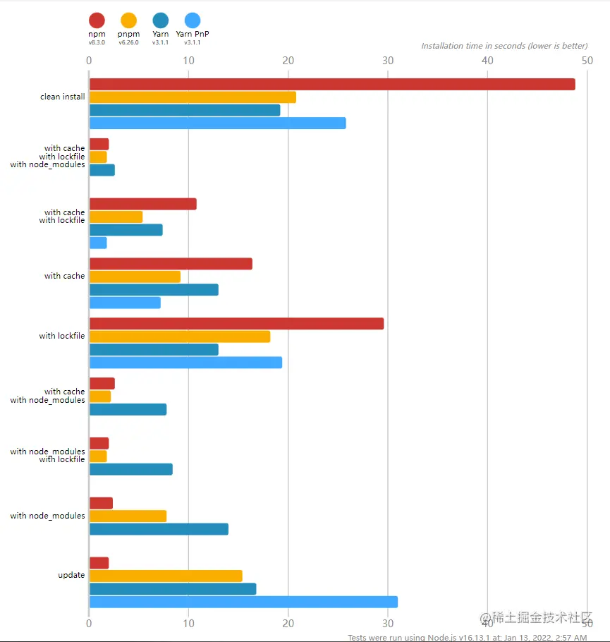 某一天逛Github的时候发现有个项目叫pnpm,官方的描述以及bechmarks如下