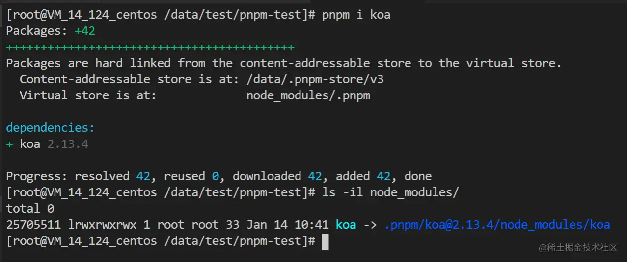 使用pnpm 安装 koa,pnpm会将包放到一个全局的store目录中( $XDG_STATE_HOME/pnpm), 项目node_modules通过hard link引入