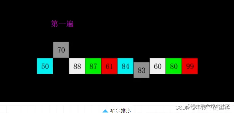 「希尔排序」是插入排序的一种。也称缩小增量排序,是直接插入排序算法的一种更高效的改进版本。希尔排序是非稳定排序算法。「基本思想:」是把记录按下标的一定增量分组,对每组使用直接插入排序算法排序;随着增量逐渐减少,每组包含的关键词越来越多,当增量减至1时,整个文件恰被分成一组,算法便终止。
