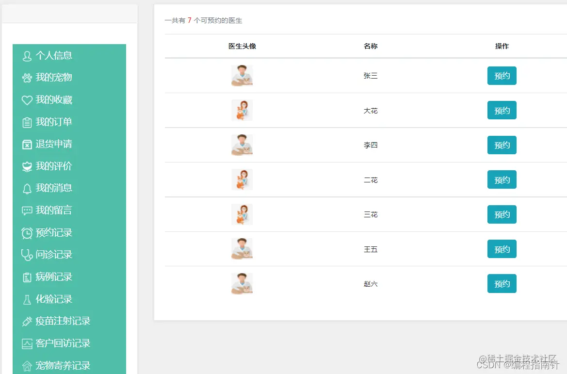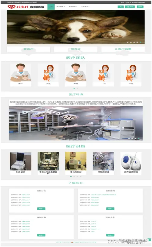 本系统前台面向的用户是客户,客户可以进行预约、浏览医院发布的文章、进入医院商城为宠物购物、如有疑问可以向官方留言、还可以查看关于自己的所有记录信息,如:看病记录、预约记录、疫苗注射记录等。后台面向的用户是医院人员,系统管理员拥有最高权限,可以对所有数据进行管理,为所有的角色分配权限以及创建角色;业务管理员的权限主要是对一些常用数据的维护;医生可以接受客户发布的预约医生的预约单以及处理属于自己的预约单,回答客户的问诊;美容师可以接受客户发布的预约美容的预约单以及处理属于自己的预约单。