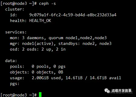 最后查看ceph运行状态,我只添加了两个osd