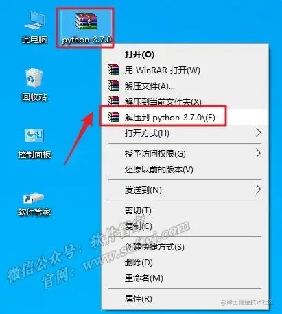 1.鼠标右击【python-3.7.0】压缩包选择【解压到 python-3.7.0】。