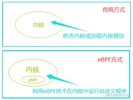 图1 eBPF技术与传统方式比较图