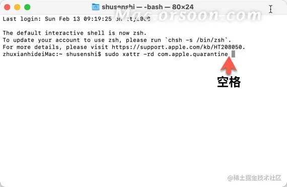 然后按键盘的回车键(return),输入密码,再按回车键,完成。