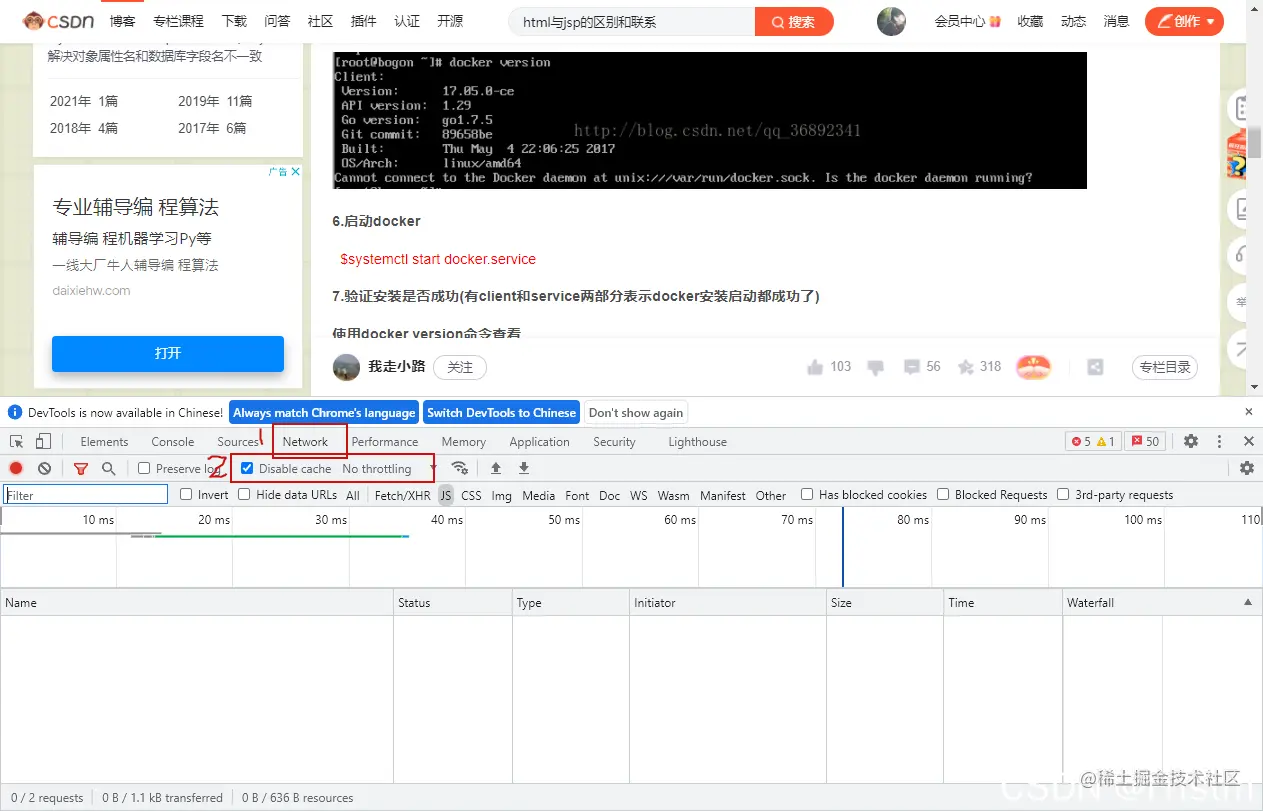 5.最后一步就是关闭我们浏览器缓存(打开浏览器页面鼠标右击检查进入network)