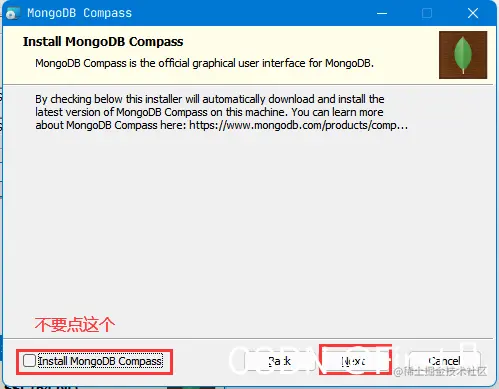MongoDB安装(图文教程)[新人创作礼] First 2022-03-23 182 阅读1分钟 我的是4.0.28的版本 链接:pan.baidu.com/s/1mCFggcjT… 提取码:1314 一定记住不要点这个不然你会一直卡在这个页面 操作以上步骤即可安装成功