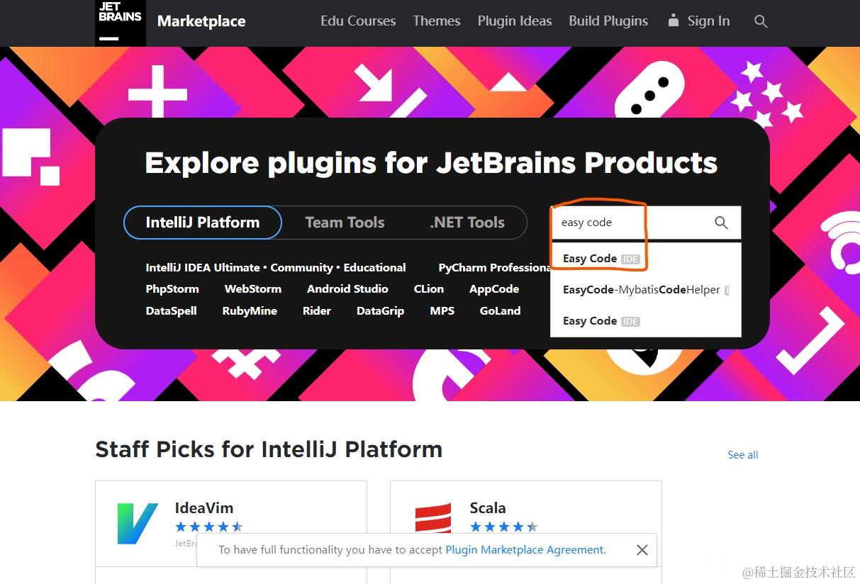 IDEA代码生成器(Easy Code) First 2022-03-23 131 阅读1分钟 1.打开idea----->settings---->Plugins 搜索EasyCode 2.如果搜索不到就打开我给的网址JetBrains Marketplace