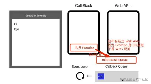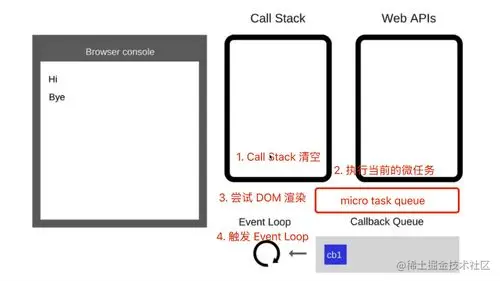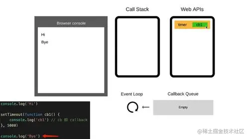 5. console.log("Bye")进入调用栈,执行,调用栈清空