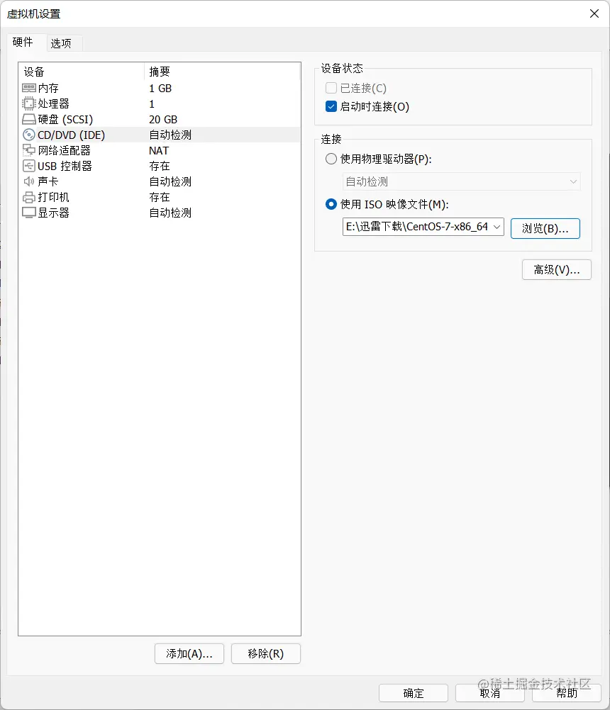 配置操作系统镜像 到刚创建好的虚拟机,为其配置操作系统镜像,如图所示,