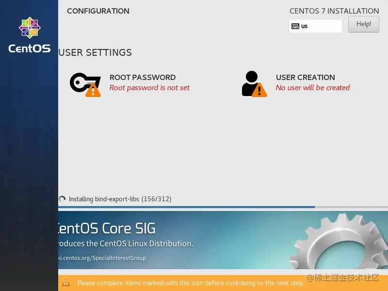 上述配置完成后我们选择 Begin Installation,之后会跳转到如图界面,