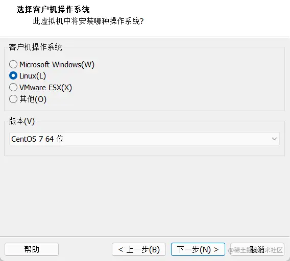 这里因为我下载的是 Centos 7 x64 的镜像,所以我的配置如下所示,下一步