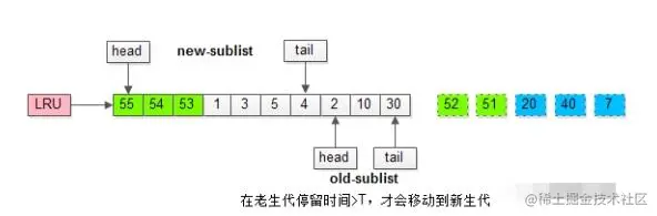而只有在老生代呆的时间足够久,停留时间大于T,才会被插入新生代头部。