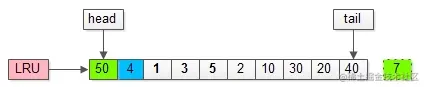 (2)把页号为50的页,放到LRU头部,同时淘汰尾部页号为7的页;