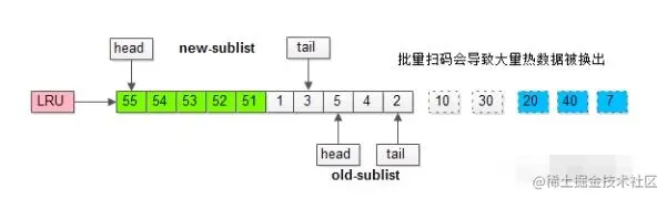 如此一来,所有的数据页都会被加载到新生代的头部,但只会访问一次,真正的热数据被大量换出。
