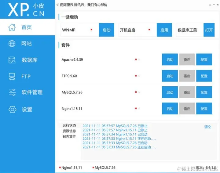 由于我们本地的网页是依托于本地网页环境存在的,因此我们需要让网页运行环境能够在开机后自行启动