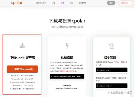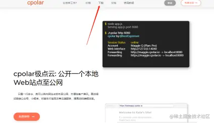 首先,我们要在本地电脑中安装cpolar,安装方法非常简单,只要登录cpolar官网,在官网界面上方点击“下载”按钮。