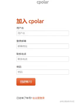 在跳转的注册页面,填写入必要信息。需要注意的是,cpolar采用的是账号、密码、token码组成的安全措施,因此需要牢记我们的账号密码。