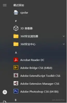 在软件安装完毕后,就会在开始菜单中生成cpolar的图标
