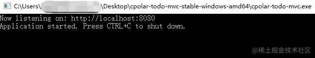 下载完成后直接解压缩双击运行即可,该程序会自动建立起一个TODO List的网页测试环境。需要注意的是,这个程序仅供测试,因此该命令行窗口需要保持打开,以确保测试环境有效。如果将该窗口关闭会导致测试环境同时关闭,进而导致cpolar建立的隧道无法指向本地TODO List的网页。