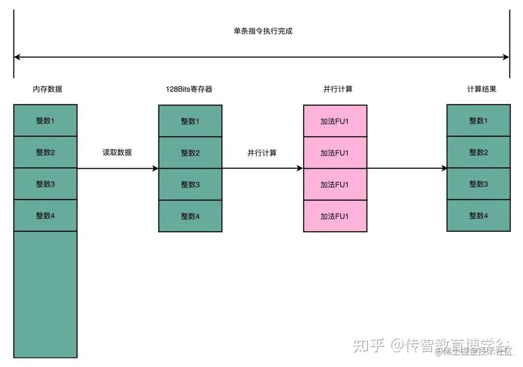 “可能需要新增一些容量大一些的寄存器,比如128bit长度,可以同时容纳4个32位的整数”