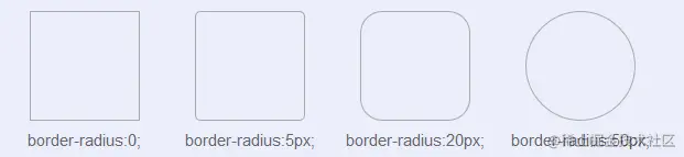 border-radius 属性为元素添加圆角边框,可以设置四个圆角的大小。在这个例子中,使用该属性将时钟元素设置为圆形,这里写一个例子:4 个 div 元素,每个元素的宽高为100px,不同 border-radius 的效果: