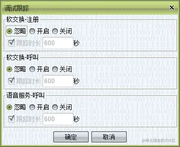 备注:跟踪时长为需要跟踪注册信息的时间,勾选开启不勾选跟踪时长表示一直跟踪,直到重启软交换或者服务器后才会终止跟踪