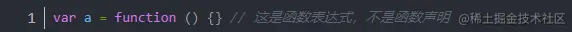区分函数声明和表达式最简单的方法是看 function 关键字出现在声明中的位置(不仅仅是一行代码,而是整个声明中的位置),如果 function 是声明中的第一个词,那么就是一个函数声明,否则就是一个函数表达式。