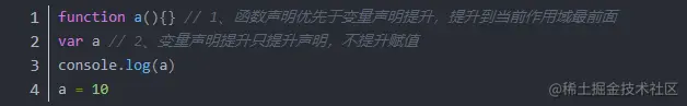 以上代码打印结果为:function a() {} ,但是最终的打印结果是:10。