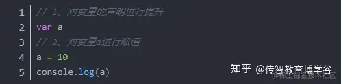 var a = 10;这样的变量声明,会被分解成两个独立的步骤: