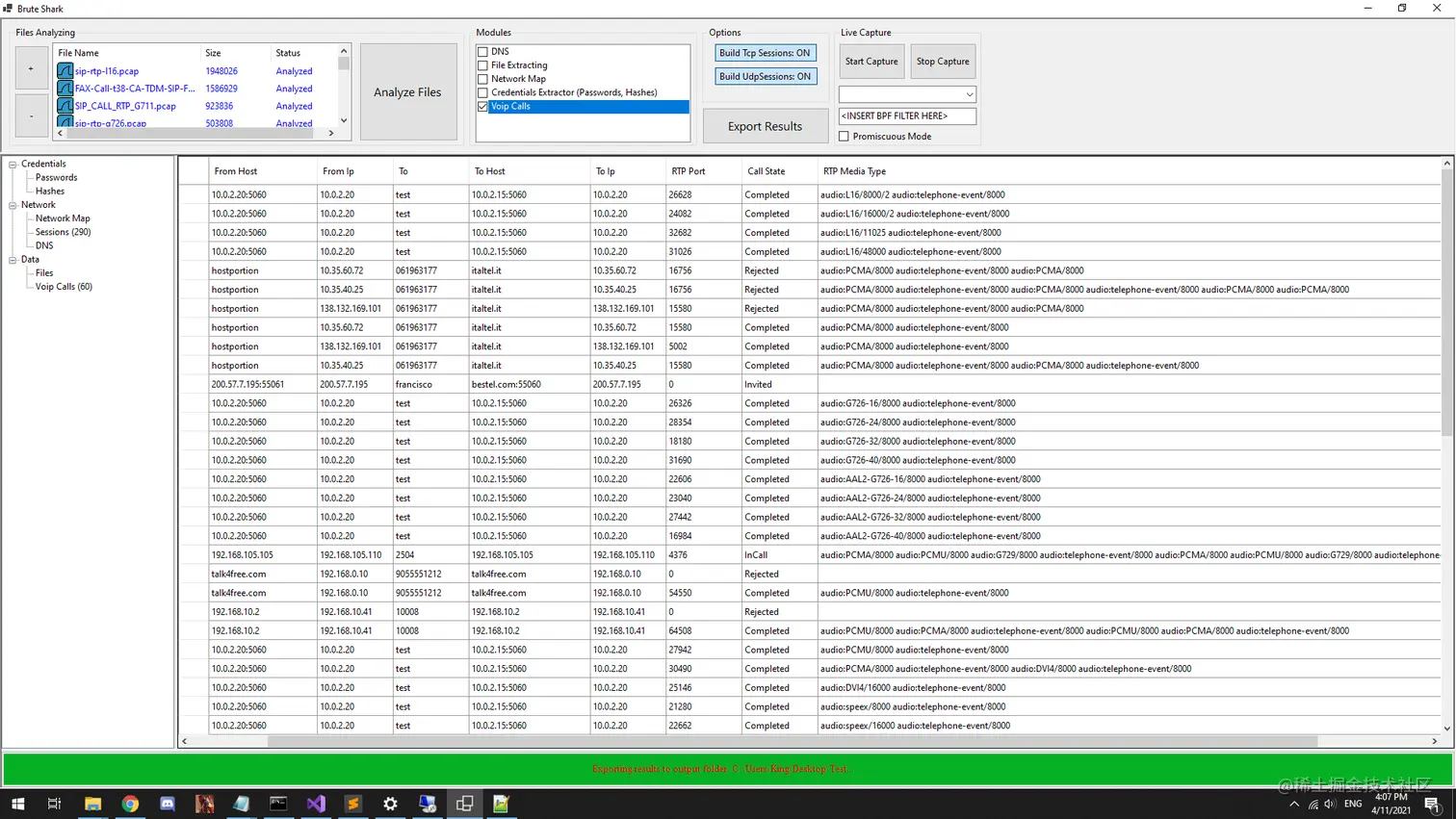 BruteSharkCli -m Credentials -d "C:\Users\King\Desktop\Pcap Files"