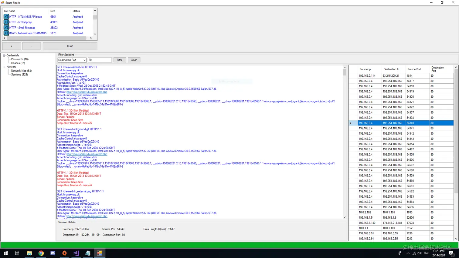 BruteShark是一款功能强大的网络安全取证分析工具(NFAT),在该工具的帮助下,广大研究人员可以轻松地对网络流量(主要是PCAP文件,但也可以从网络接口直接实时捕捉流量)进行深度处理和审查。该工具的功能主要包括密码提取、网络映射构建、TCP回话重建和提取加密密码的哈希等,该工具设置还可以将提取出的加密密码哈希转换为Hashcat格式来执行暴力破解测试。