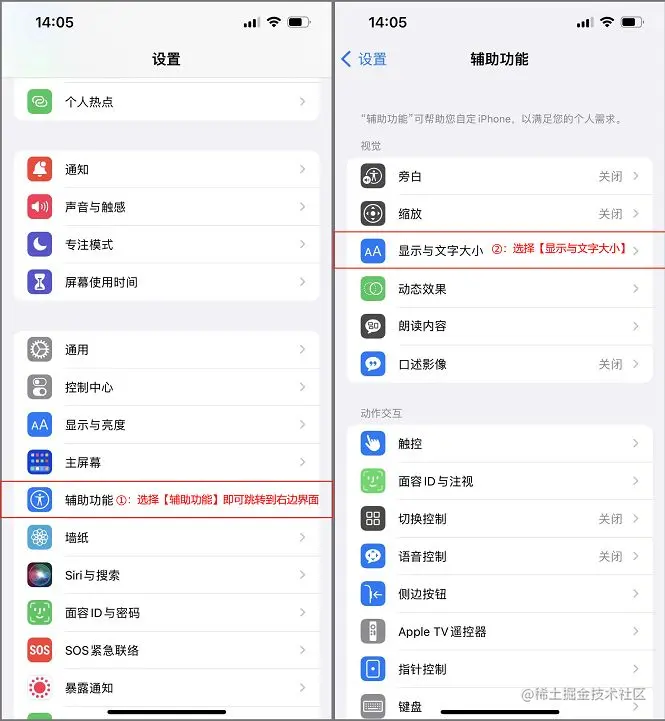步骤1:首先打开【设置】然后一直往下找到【辅助功能】,进入【辅助功能】以后点击【显示与文字大小】;