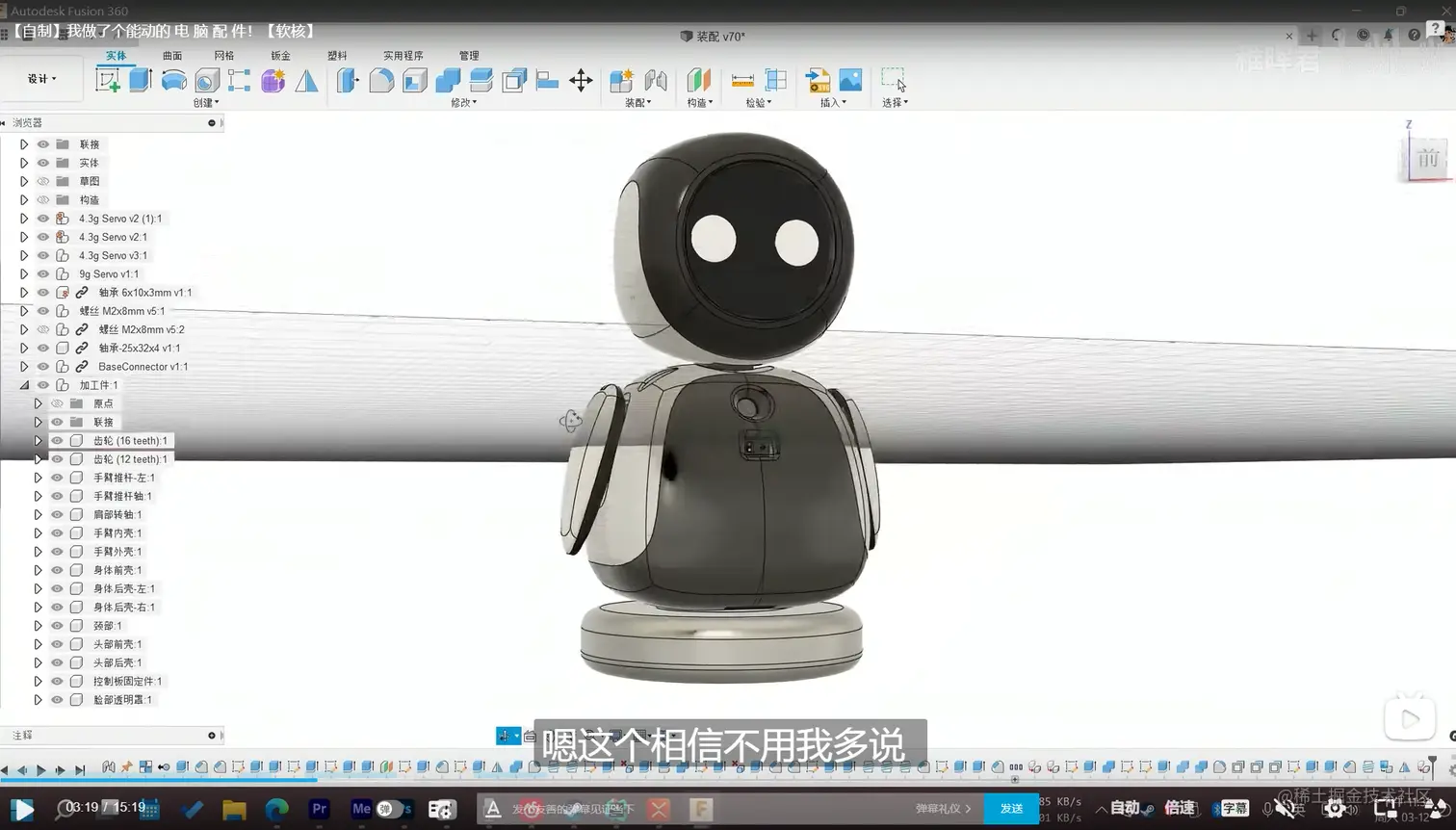部件加工: 作者的机器人的主要部件由于包括较为精密的部件,所以是由3D打印进行加工的。