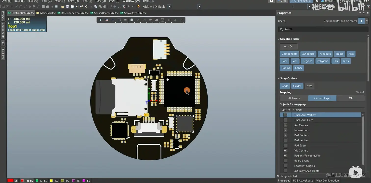 主要包括5个板子: ElectronBot 头部的主控板、 SensorBoard 肚子里的传感器板子、 BaseConnector 底座上的 USB Type-C 插座、 ServoDrive及ServoDrive-DK 用于魔改舵机替换舵机驱动板的电路。