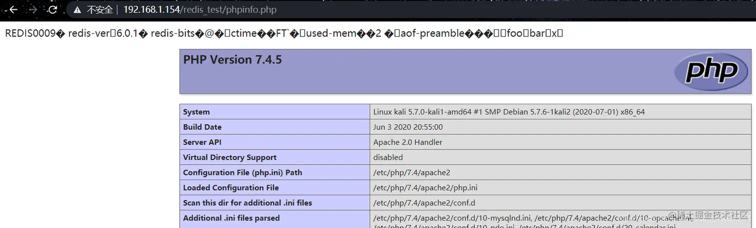 服务器:kali2020.3 开启 redis 和 apache2 IP:192.168.1.154